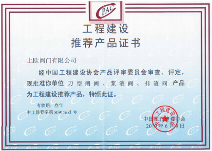 Engineering construction recommended product certificate