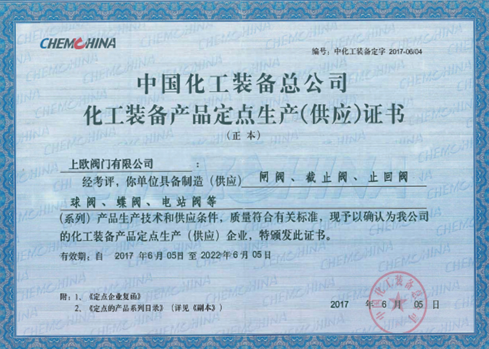 Chemical equipment product designated production (supply) certificate