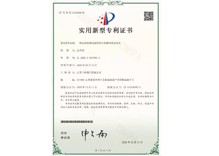 Utility model patent certificate